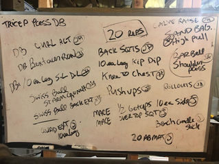 15 reps each: Bent over rows DB #35 Candlesticks on bench (core) Hollow Rocks (core) Back Extensions on Bosu Sand Bag power cleans Run 400